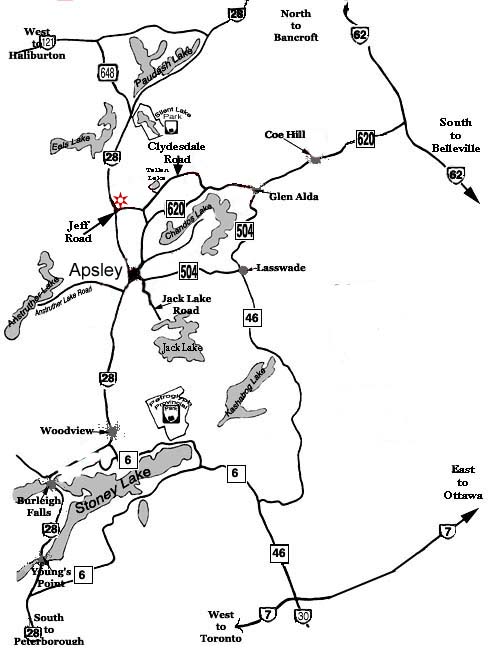 Follow 28 north, past Burleigh Falls and past Apsley about eight kilometres