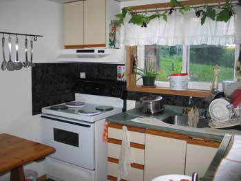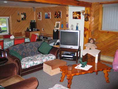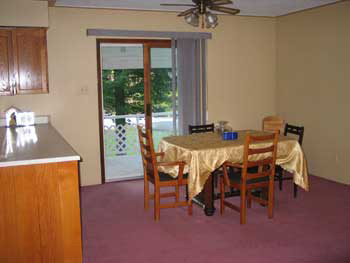Here are some interior pictures of the house. It really is a house and not a cottage although we may call it so. There are two floors The upstairs has a kitchen, dining room/living room, bathroom and three bedrooms, two of which currently have double beds. Downstairs has a kitchen, dining area, bathroom, family room and one bedroom as well as a single day bed. Both kitchens have stove, frig and microwave. DVD's and VCR's can be viewed in the family room. The downstairs has a walkout sliding door to the pond.